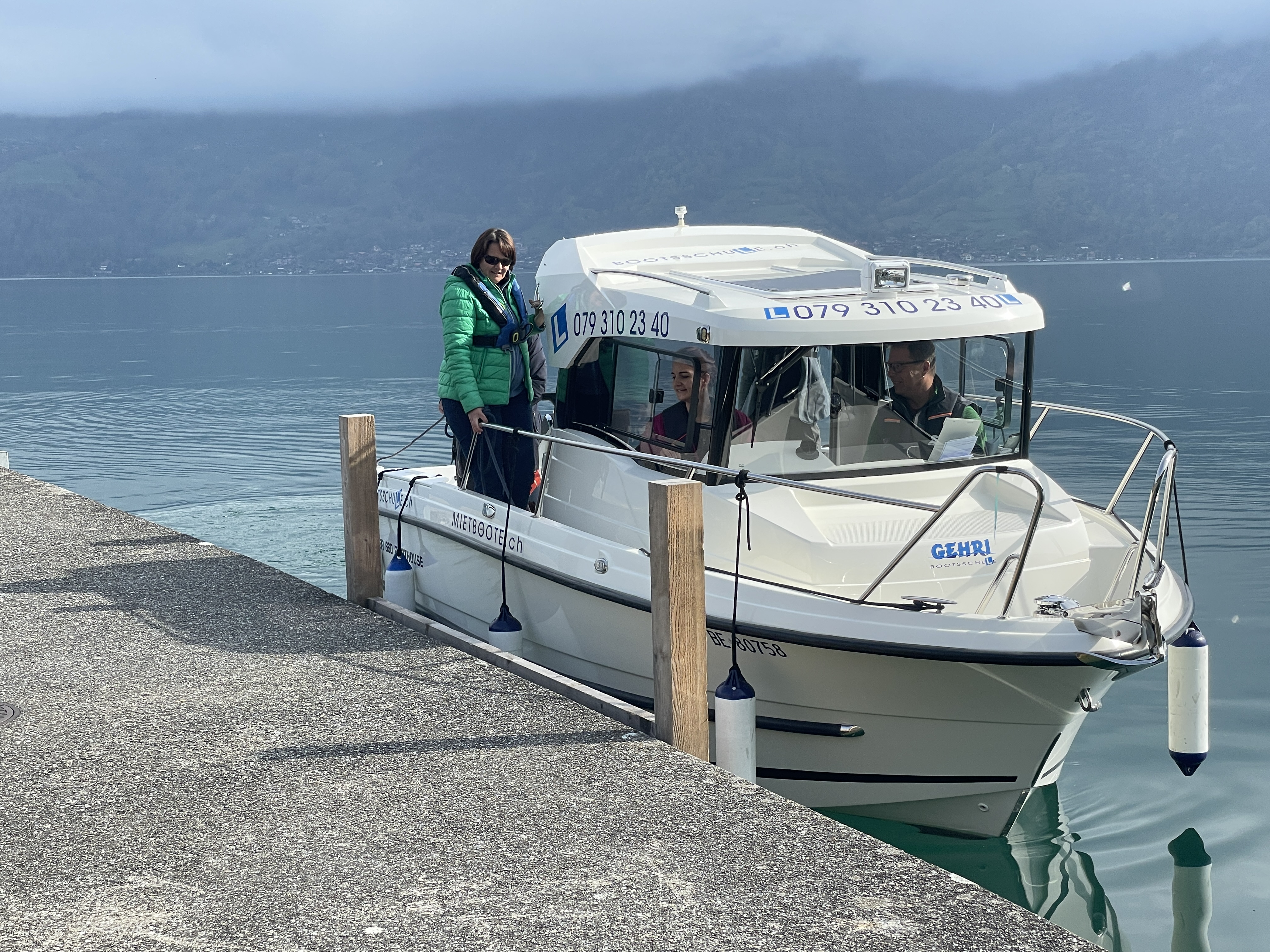 In Zusammenarbeit mit zwei Experten des DMYV Prüfungsausschuss Prüfungszentrum Bodensee | Stuttgart | Ausland durften wir die Prüfungen in unserem Heimathafen Bootshafen Güetital am Thunersee auf unserem bewährten Schulschiff Parker 660 Pilothouse durchführen.