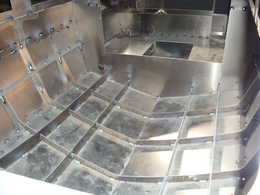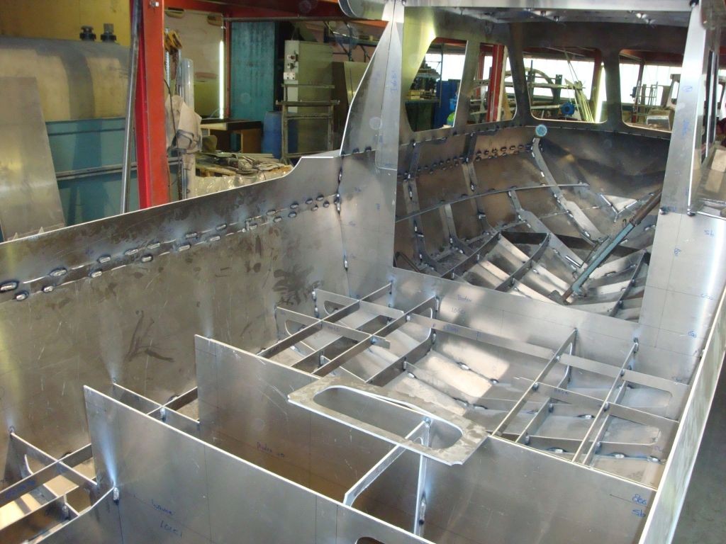 Das Schiff ist massiv aus seewasserbeständigen Aluminium (ALMG 4.5) gebaut und beeindruckt somit durch seine Unverwüstbarkeit und Langlebigkeit.
