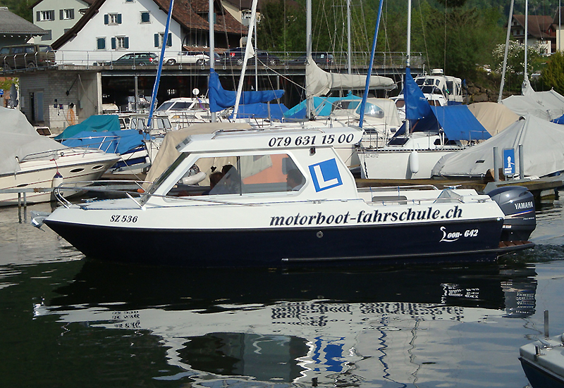 Bootsprüfung Motorboot Kat. A: Modernes beheiztes Kabineschiff für den Motorbootunterricht am Zürichsee. Der Bootsunterricht findet direkt in den Prüfungsgebieten statt.